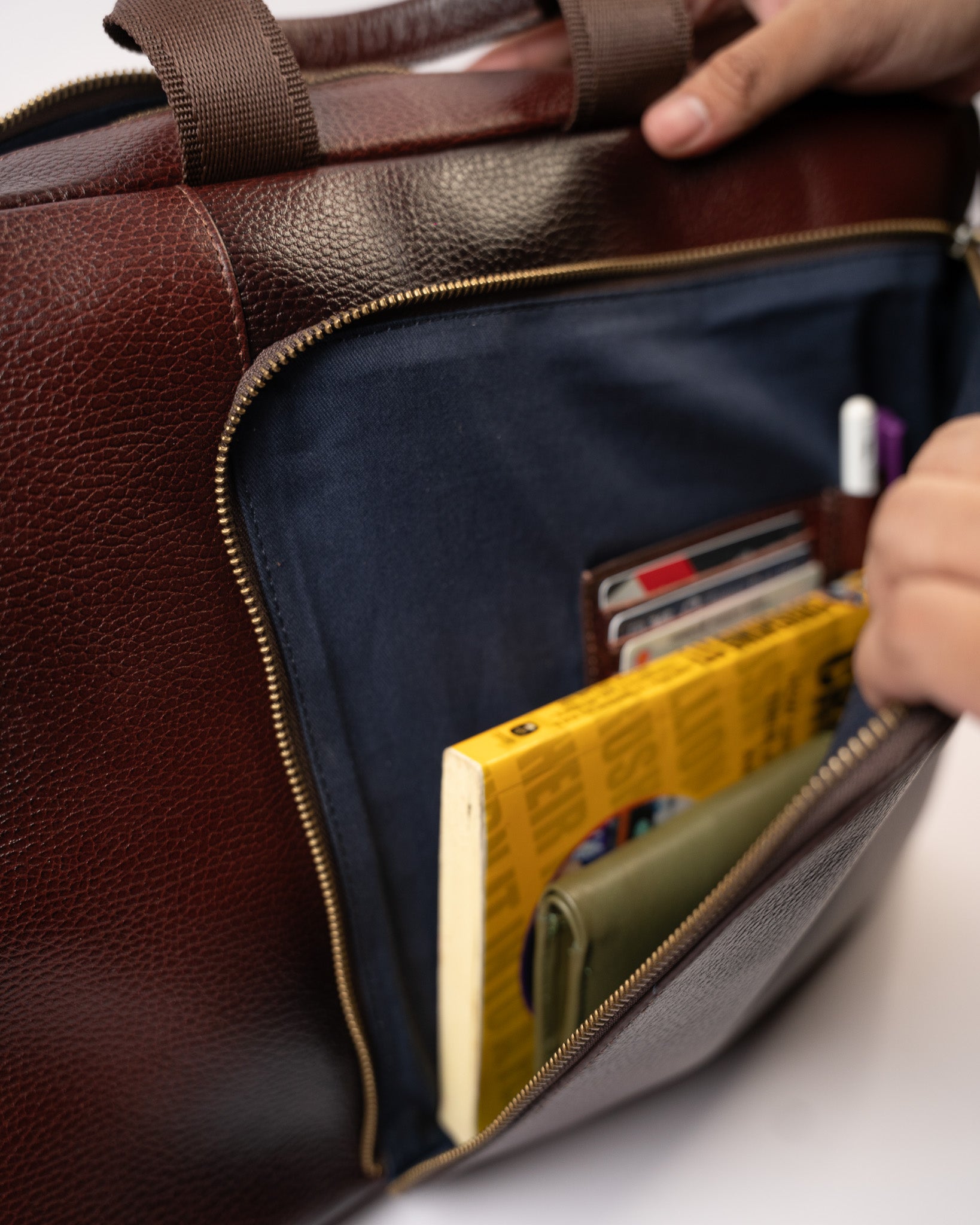 The Admin Panel: A dedicated suite of pockets for your phone, wallet, cards, and pens keeps your essentials in perfect order.